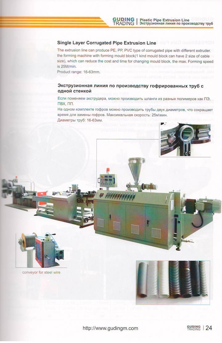 Single Layer Corrugated Pipe Extrusion Line